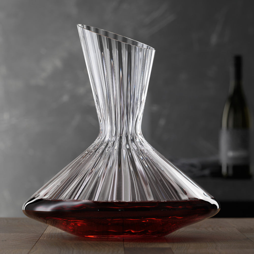 Bellísimo decantador de la prestigiosa marca Spiegelau. El decantador pertenece a la línea Lifestyle y tiene una estructura de ondas suaves que tiene un gran efecto óptico. Lifestyle es una serie que combina lo moderno con el "Zeitgeist" y garantiza una cena con estilo. La jarra es adecuada para 0,75 litro de vino pero tiene una capacidad de 2,9 litros.