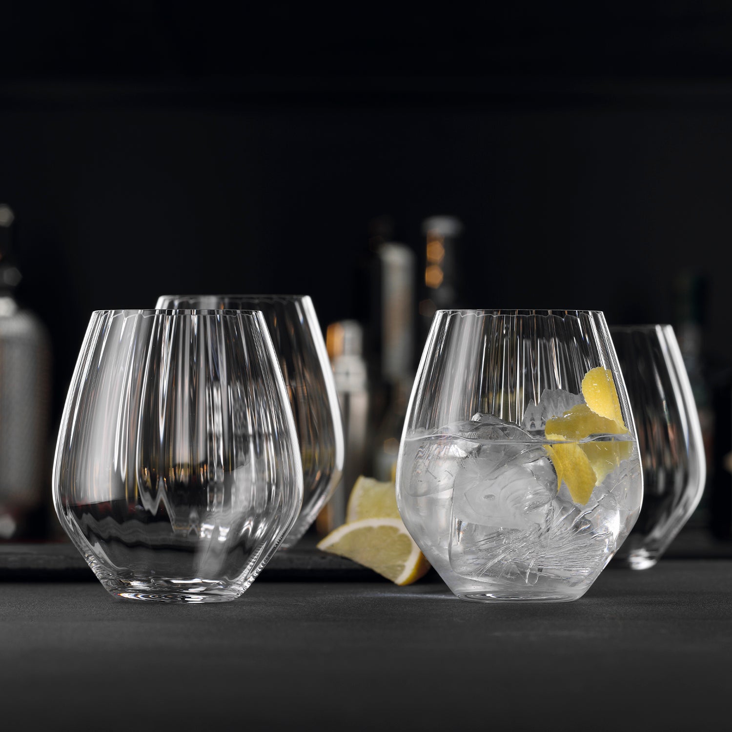 Son el último lanzamiento de Spiegelau. Estas copas Gin Tonic Optic tienen un diseño único con 24 líneas verticales que le dan un brillo y toque único a tus tragos o bebidas favoritas.